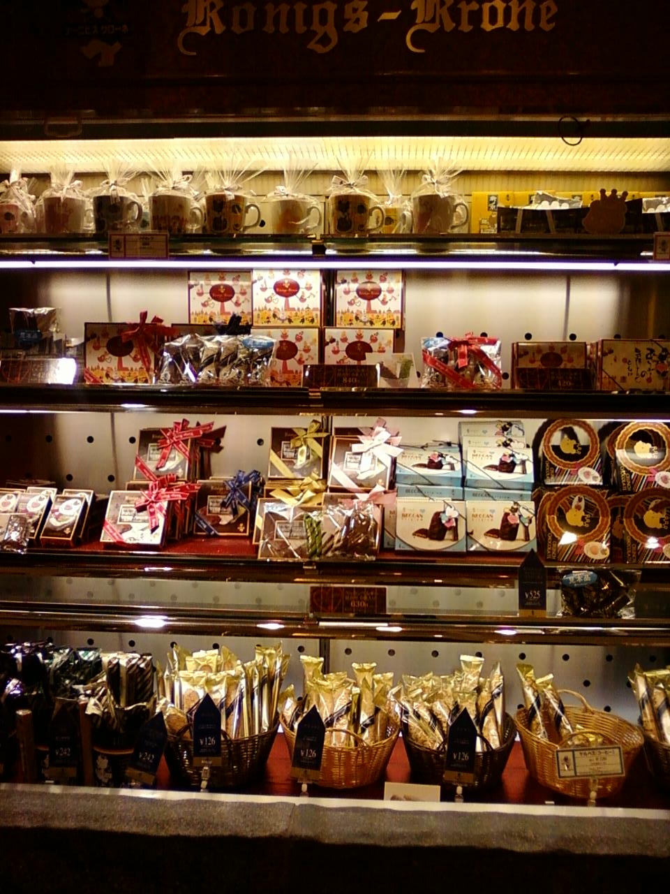 ここのケーニヒス・クローネさんは、新宿駅新南口から二分くらいのところにある、タカシマヤタイムズスクエアの地下1階にあります。食品フロアの中です。店内の隅の壁際にありますが、結構広い面積を有していて、品数豊富です。ちょうどバレンタインの時期だったのでチョコレートが目立ちました。特に熊の形のクッキー、かわいいですね。神戸生まれの洋菓子屋さんということですが、ドイツの雰囲気が盛りだくさんで新鮮でした。