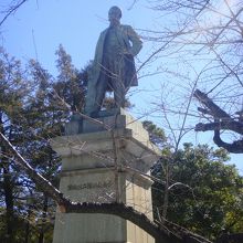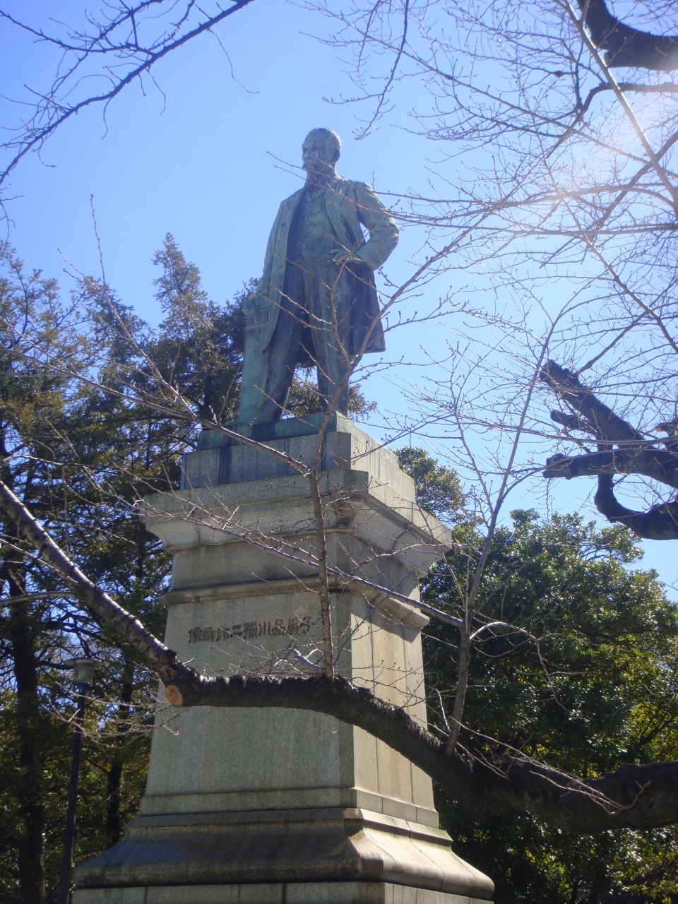 品川弥治郎の銅像は、九段坂上牛ケ淵のお濠沿いの九段坂公園内にあります。品川弥二郎は長門の国出身、15歳で吉田松陰の松下村塾に入門。その後、長州藩士として尊皇攘夷運動で活躍した人物です。「宮さん、宮さん…」のとんやれ節は、品川弥二郎の作と言われています。