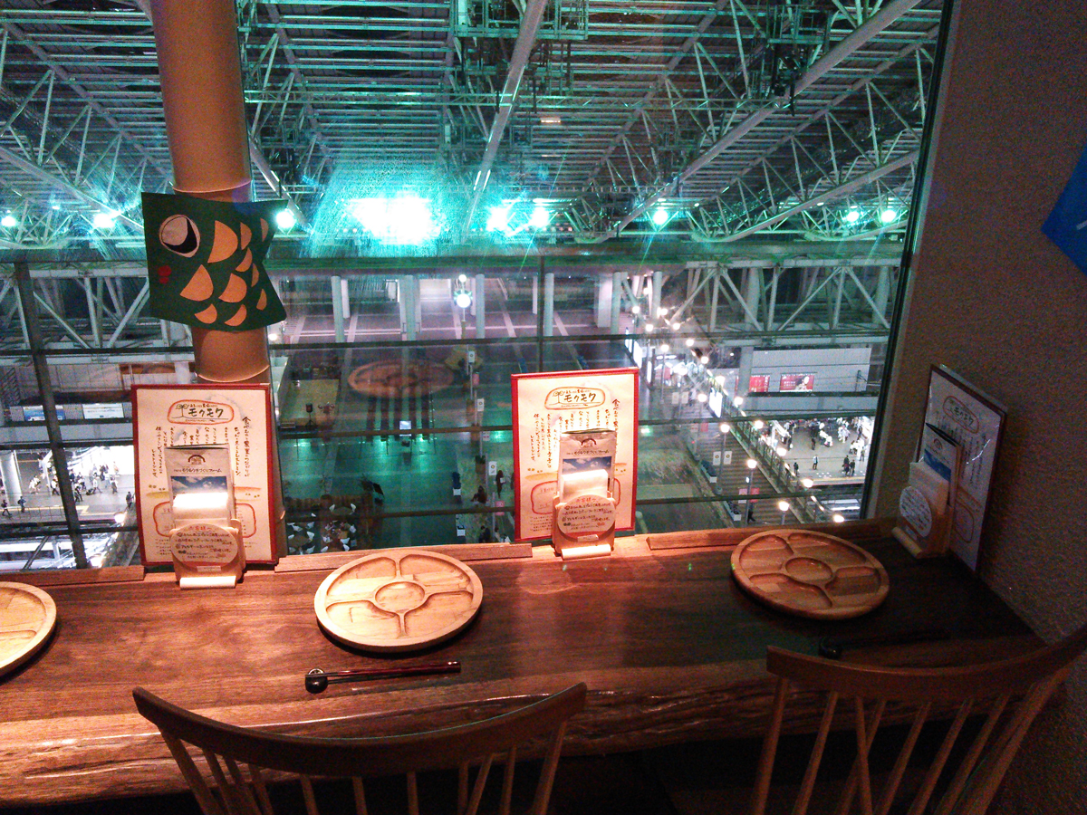 JR大阪駅北側の駅ビル、ルクアと三越伊勢丹の上層階にあるビュッフェ形式のレストラン。テーブル席と、カウンター席があり、窓側のカウンター席は大阪駅の大きな吹き抜けに面していて、その景色を眺めながら食事ができます。