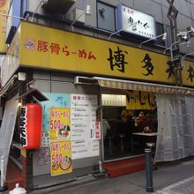 一時期大ブームだったとんこつラーメン。当時はよく食べに行ってました。最近のつけ麺ブームですっかりご無沙汰していましたが、ノボリに目が行ったので入りました。印象としては味も雰囲気も本場の博多に近い感じで満足しました。値段は一杯500円。しかも替え玉1個無料。これも魅力でした。