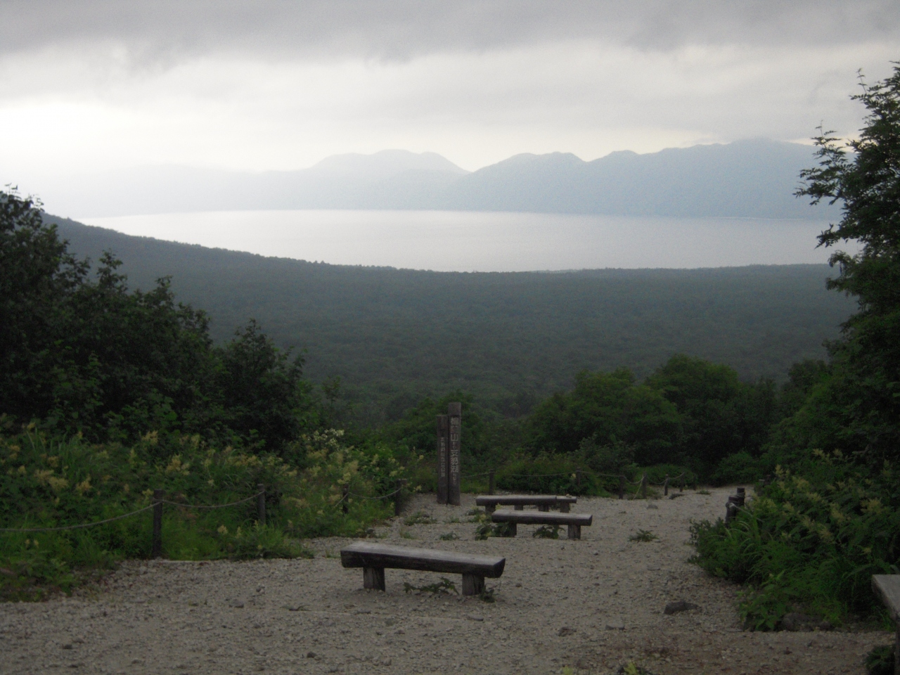 7合目駐車場からまずは展望広場へ。視界が開けて支笏湖を一望できます。