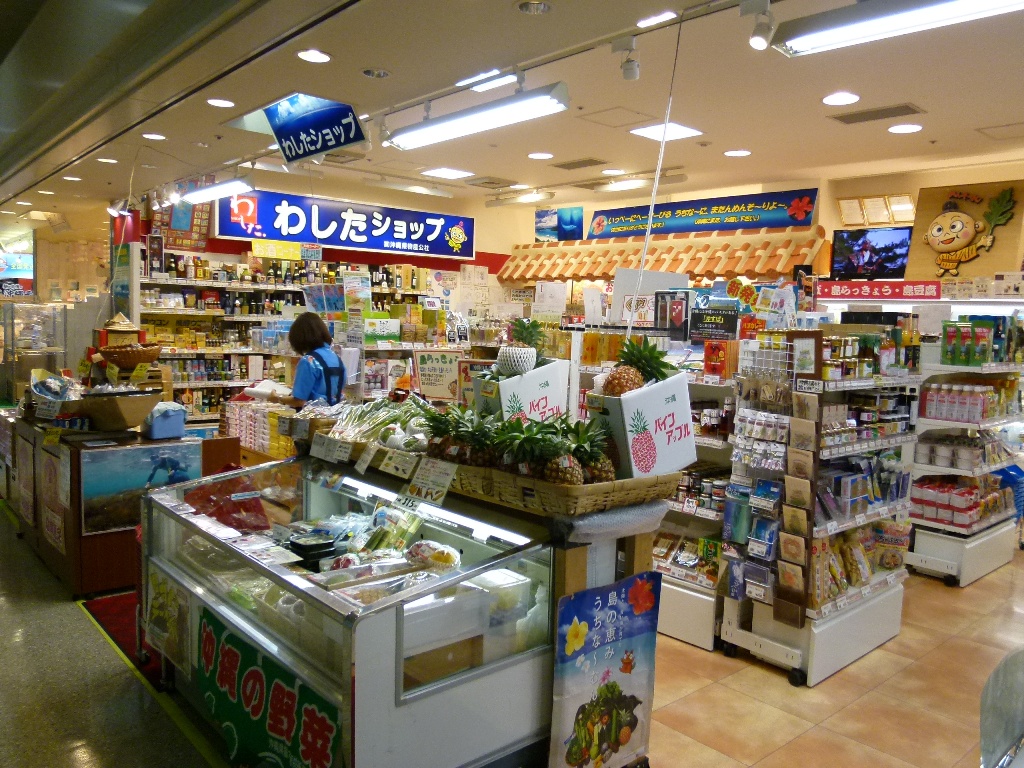 那覇空港・出発ロビー中央あたりにある沖縄特産品のあるショップです。 電子マネーはEdy利用できますがWAONは使えません。まさか空港で新鮮野菜が購入できるとは思いませんでした。ゴーヤや島豆腐、サーターアンダギーなどがありました。覗いてみるだけでも楽しいです。