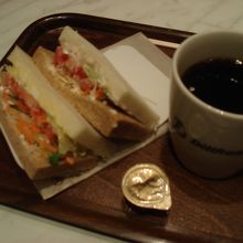 わたしは買い物で疲れたので休憩に。サンドイッチを買って後はコーヒーを頼んで席に。