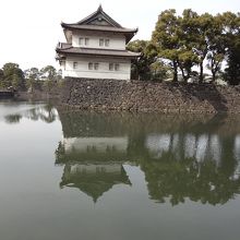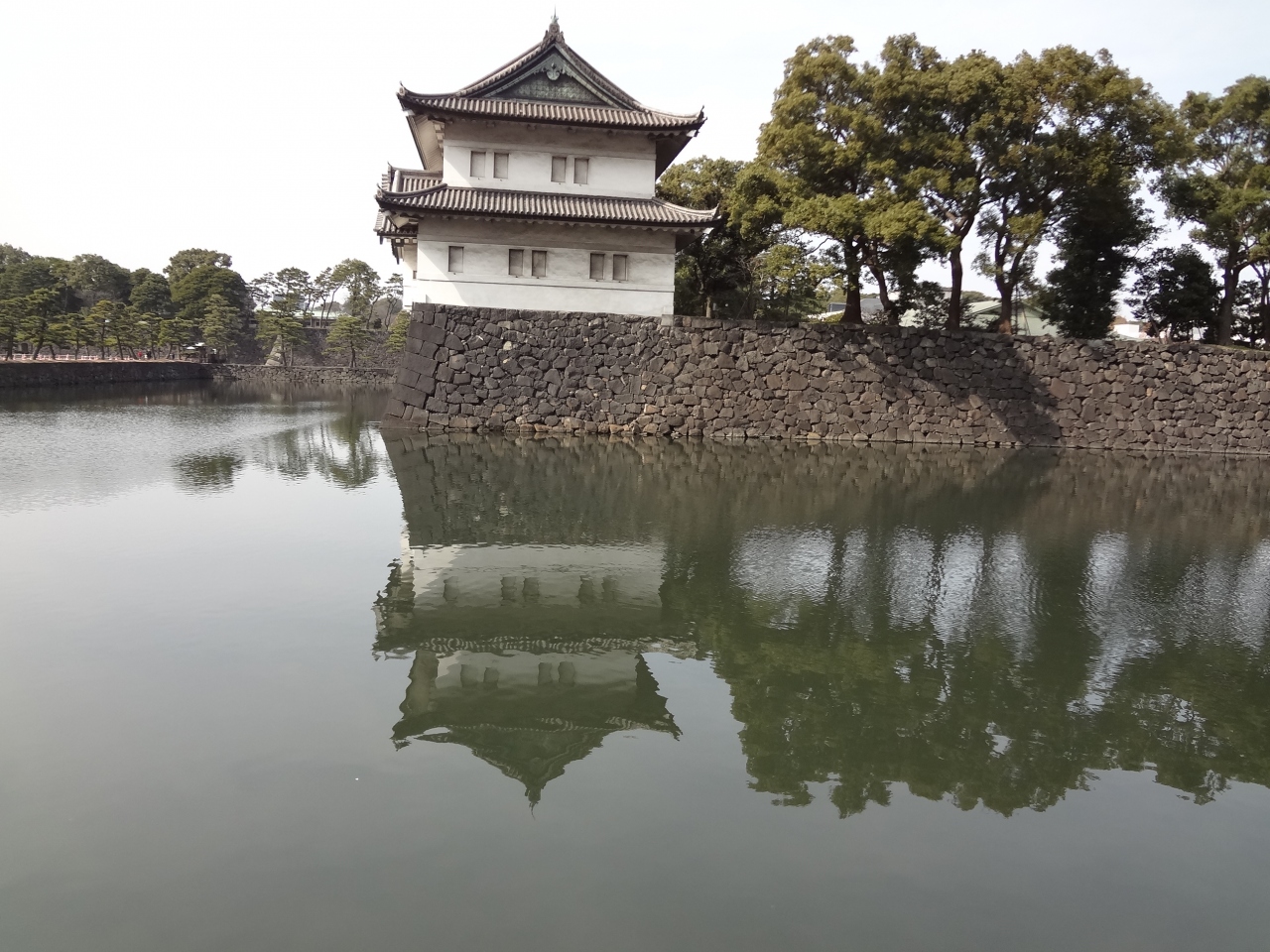 東京駅丸の内口から、真っ直ぐ歩いて行った所にある門ですが、一般見学者はここから入ることはできません。昔は、この門の瓦に太田道灌の家紋である桔梗がついていたことから桔梗門と 呼ばれるようになったそうです。北側にある大手門から入る事ができます。