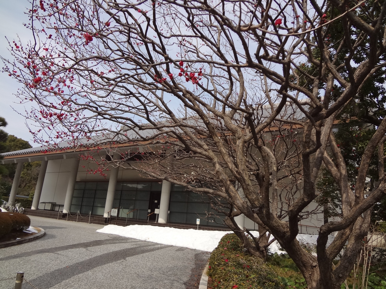 三の丸尚蔵館は、昭和天皇が所有されていた美術品が、平成4年に皇室より国へ寄贈されたことにより建設された、博物館で、一般公開されています。大手門をくぐってすぐのところにあります。建物に通じる小路の梅の花が開き始めていました。