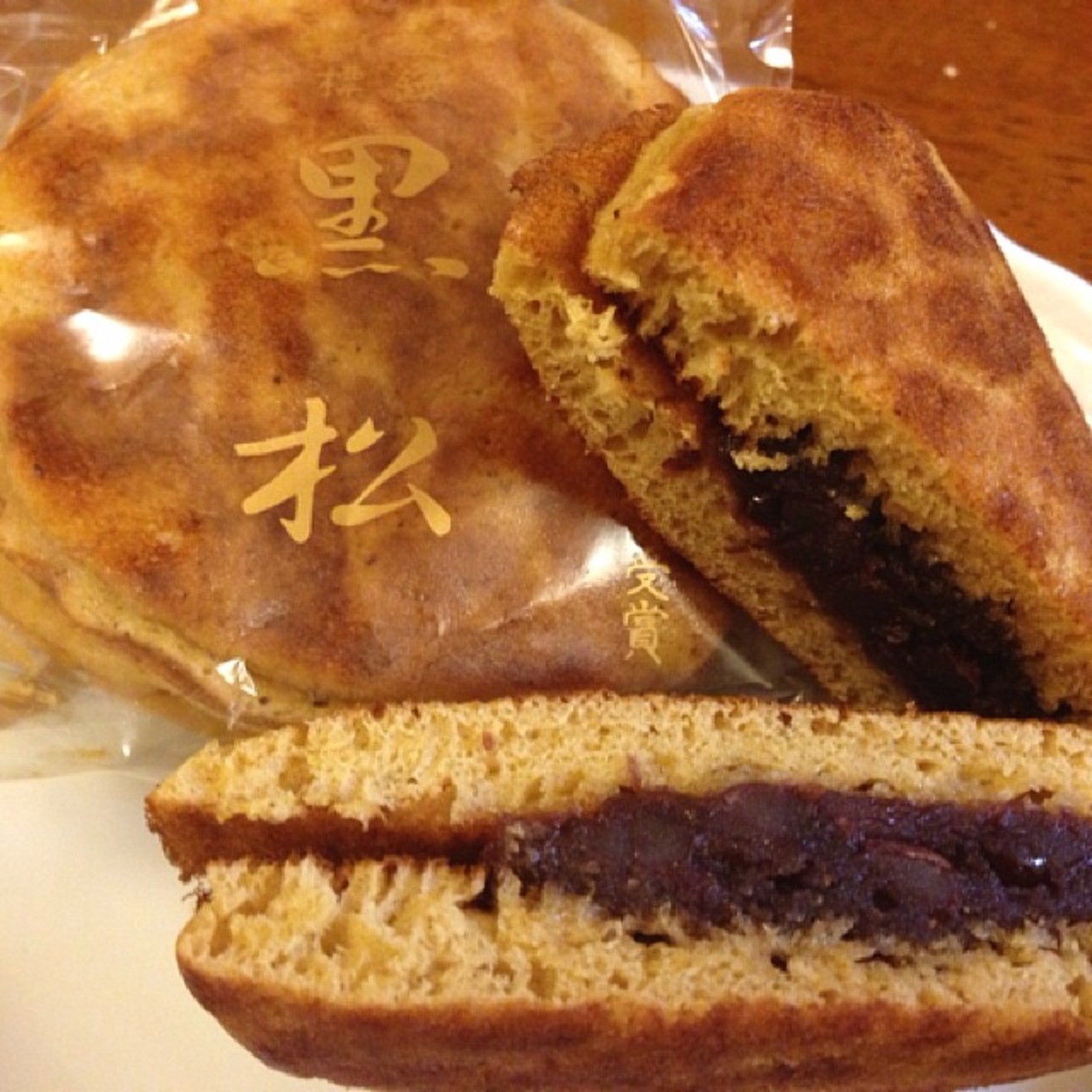 行列しないと買えないことで有名などらやき「黒松」ですが、寒さの厳しい平日の午前中に行くと10分程度の待ち時間で買えました。1個105円という価格のせいか1人で大量に買う方が多いのでさばくのに時間がかかったり売り切れるのが早いのかもしれません。黒糖とはちみつ入りの生地はフワフワのパンケーキのようです。中のあんこはまあ凡庸。ドラえもんに出てくるどら焼きとか、何かと話題性があるので手みやげにはいいかもしれません。