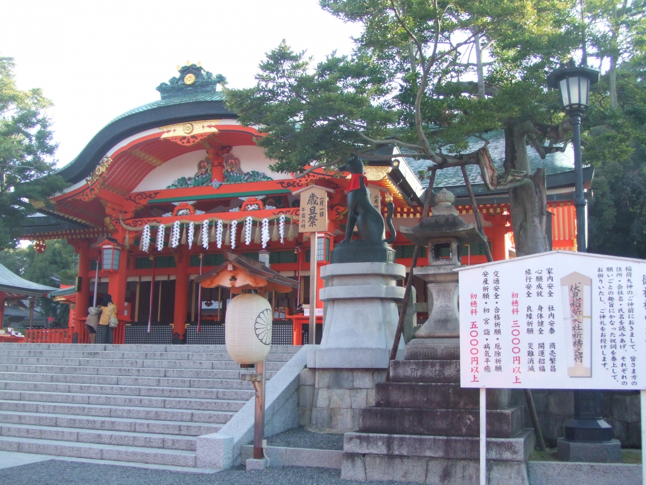 京都へは何度も仕事や観光で訪れているが、意外にも伏見稲荷大社は初めてでした。早朝にもかかわらず、大勢の観光客が参拝していました。朱色の建物が京都らしく、目を引きました。参道のお土産屋さんの、狐の形をしたおせんべいが可愛かったです。