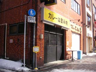 池袋駅で下車して、西口に続く地下街を進み地上に出ると西口の公園が一面の雪景色で、そのまま西に向かい、立教大学に向かう通りが分かれる池袋二又交番交差点を過ぎて少し先に黄色に黒の文字の看板の「カレーは飲み物」に着きました。