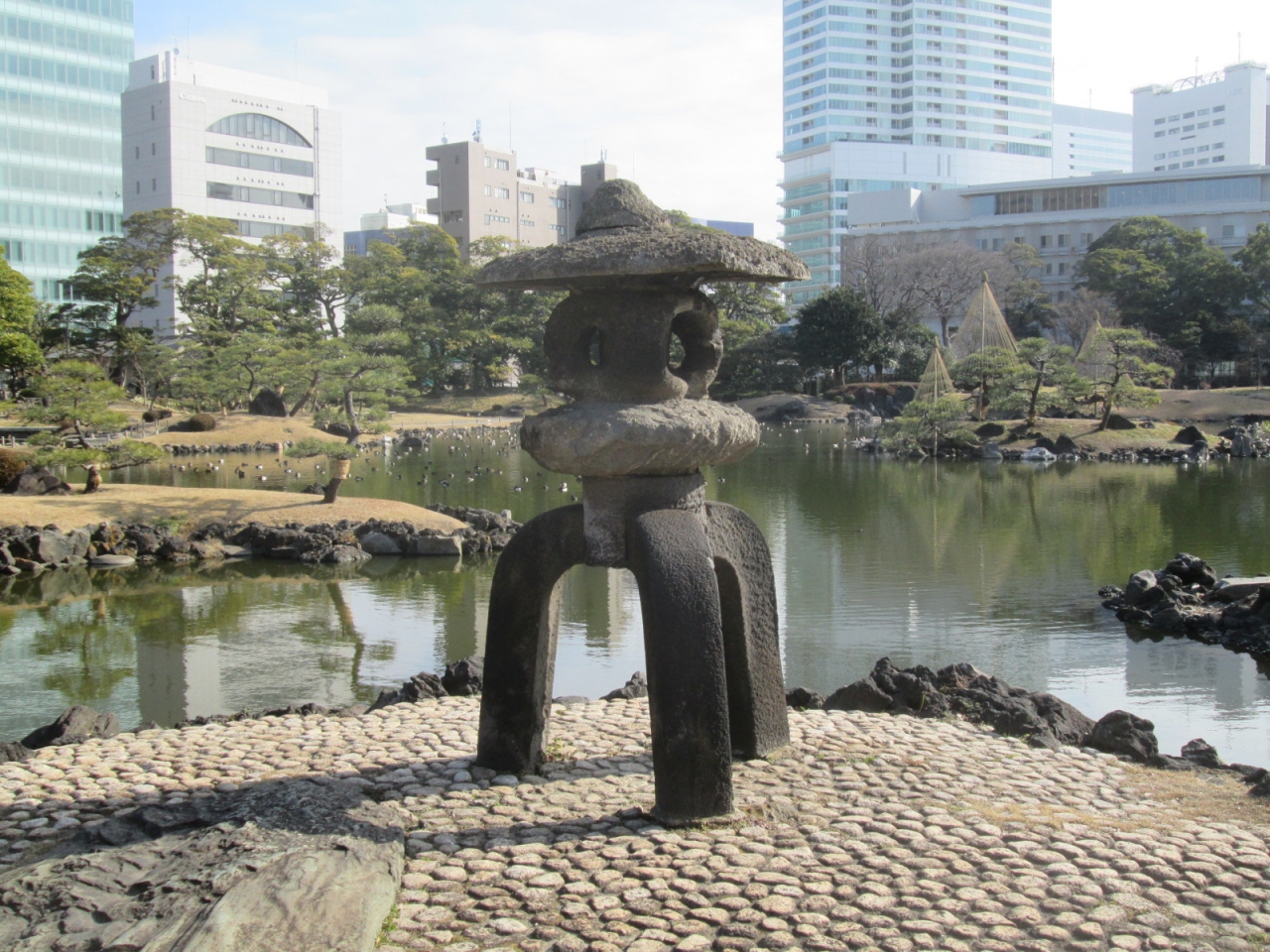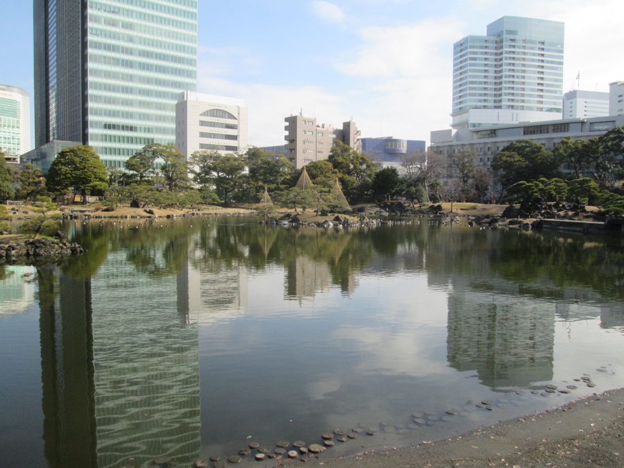 - 典型的な回遊式泉池庭園で、園内には中国の故事になぞらえた島や、明治天皇もお立ちになられた場所などがあって、ときめきながら散策を楽しみました