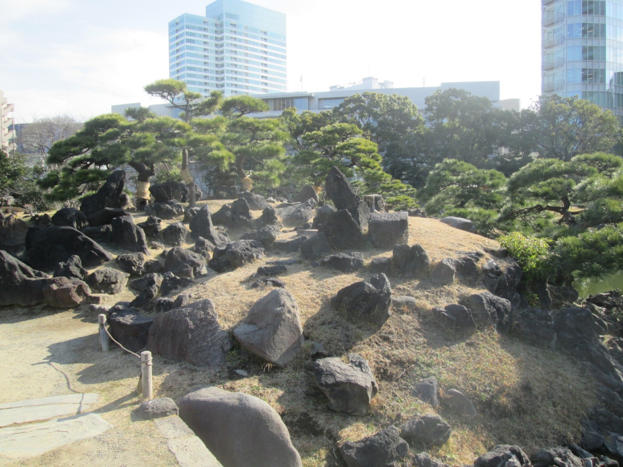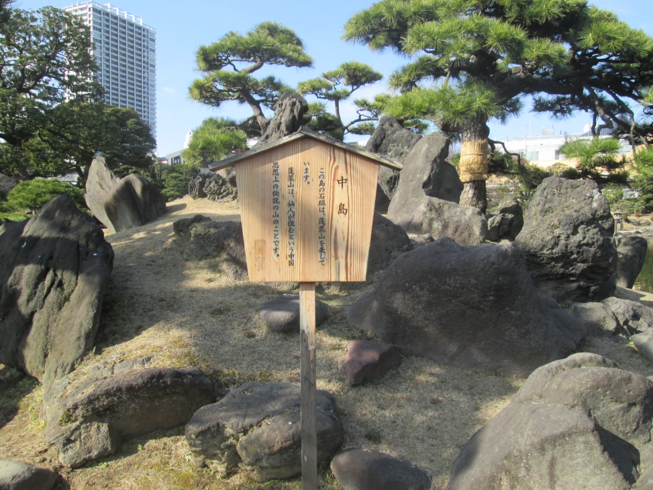 「旧芝離宮恩賜庭園」内には、景勝地としての「大山」、山渓を流れる滝を模した「枯滝石組」など、さまざまな見所がありますが、その内の一つが「西湖の堤」です。池に浮かぶ「中島」は中国で仙人が住むという伝説の蓬莱山を模したものですから、その「中島」に渡るのも中国の景勝地「西湖の堤」を模してあります。日本は古代より中国からの強い影響を受けていましたし、江戸時代の武士階級も朱子学を元にした儒教社会の上に成り立っていたわけですから、やはり中国への憧れの気持ちがこのような作庭になったのでしょうね。日本史の授業を改めて思い出しました。
