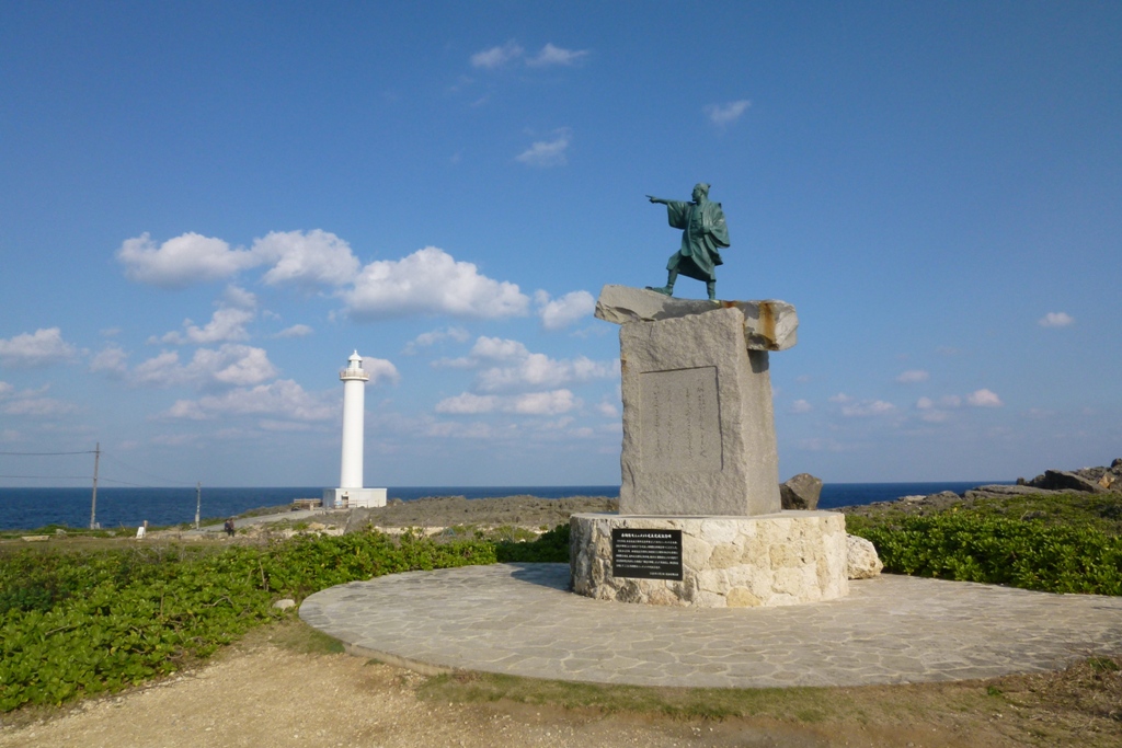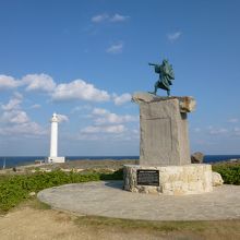 白い灯台が目印です。灯台を見るのは久しぶりではないでしょうか。本土でもなかなか見に行きません。それが青い海、青い空、澄みきった空気に似合っていますね。駐車場に車を止め岩が広がる場所に遊歩道があります。気持ちが良い散歩です。