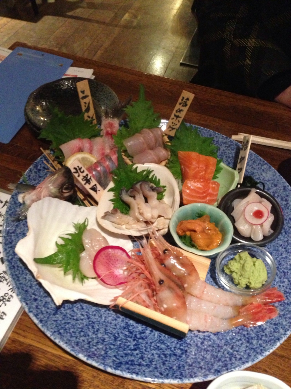 名物の刺身盛り合わせを、ガイドブックを見せて割引してもらい、北海道産の魚介を堪能しました!