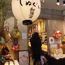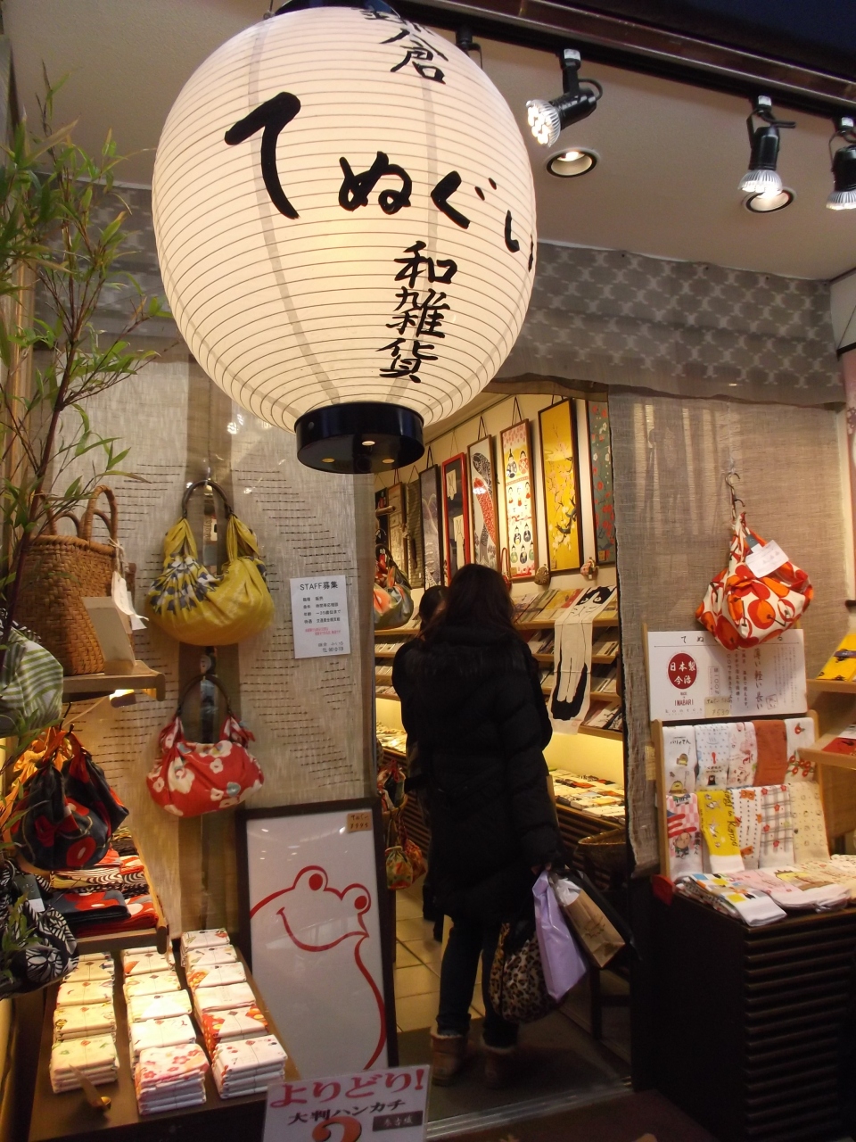 お洒落!てぬぐいファッションのお店。日本情緒の観光地らしいお土産ですね。