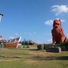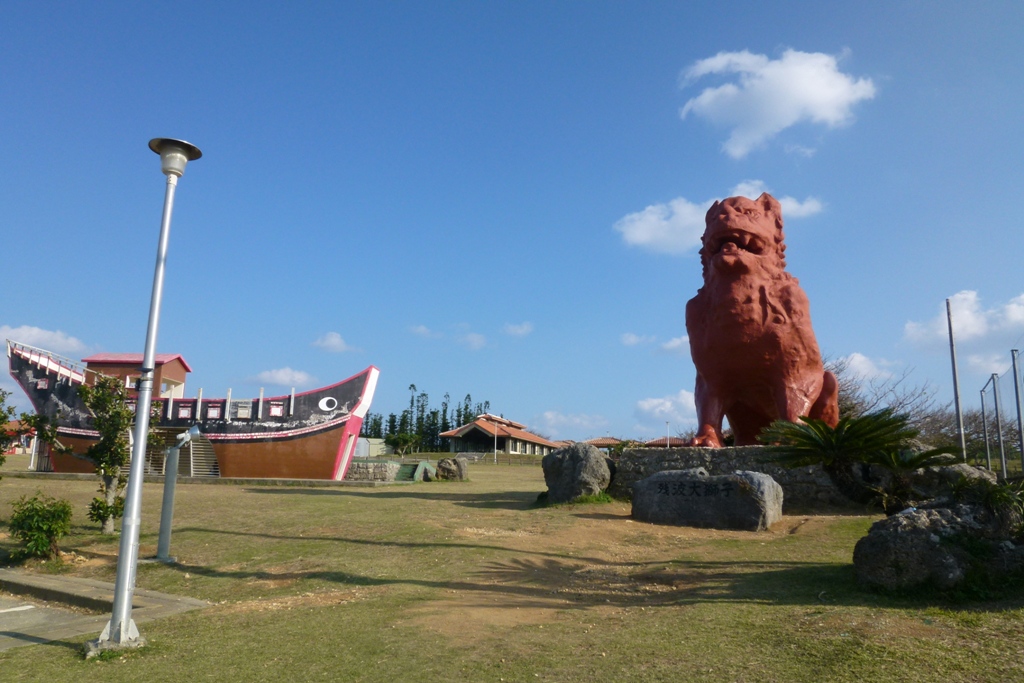 読谷村の「いこいの広場」が残波岬の入口手前にありました。駐車場の入口には巨大シーサーがお出迎え。小動物とのふれあいやテニス、サッカーなども楽しめます。食欲旺盛のヤギさんの餌は100円です。持ちこみの餌は遠慮くださいとのことです。シーズンオフという事もあって静かでした。