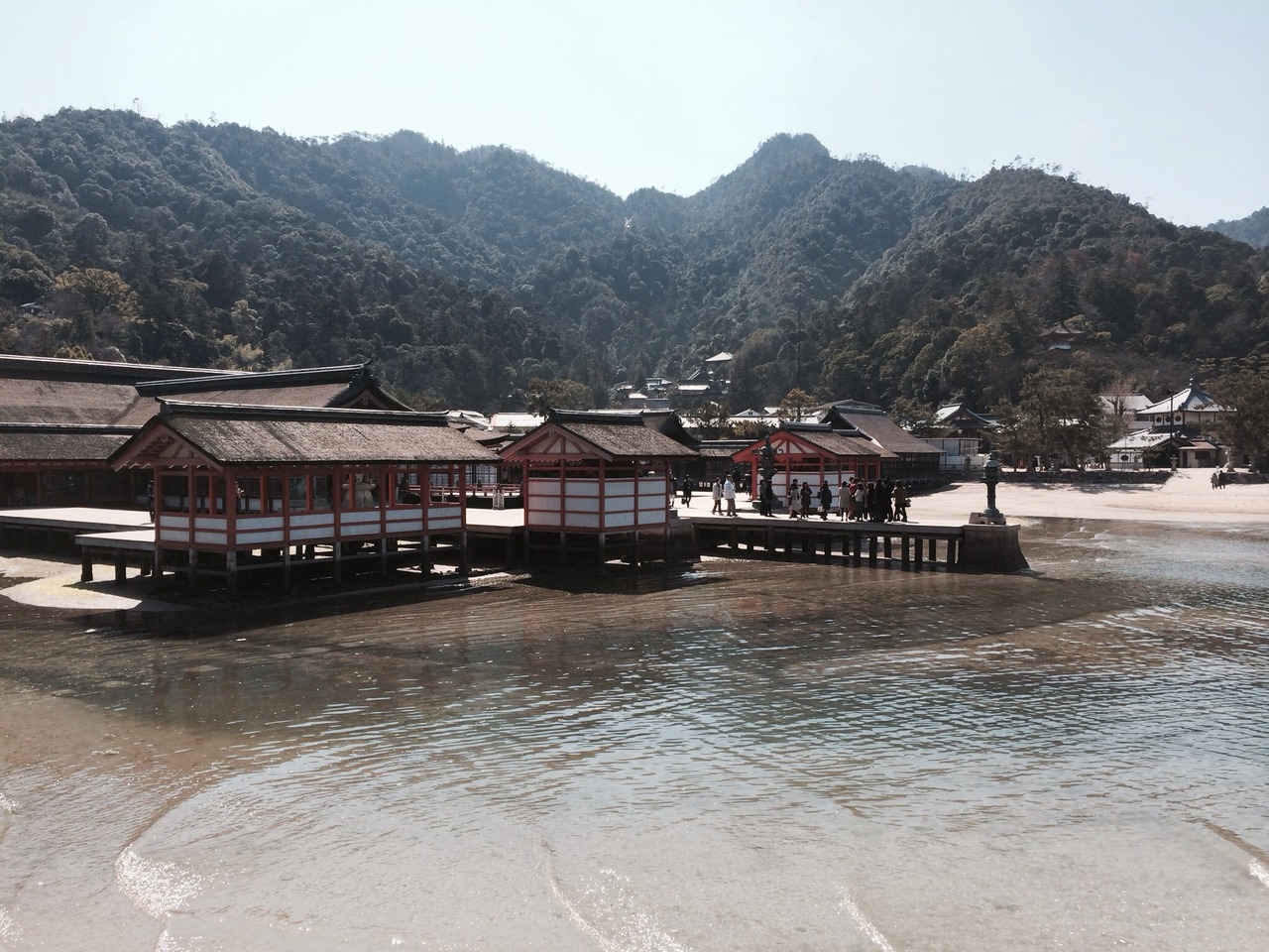 最近は修学旅行で訪れる学校が増えていますが、とにかく観光客でいっぱいでした。フェリーターミナルから厳島神社に行くまでの参道にはお土産屋やレストランが軒を連ねていて、清水寺の参道のようでした。
