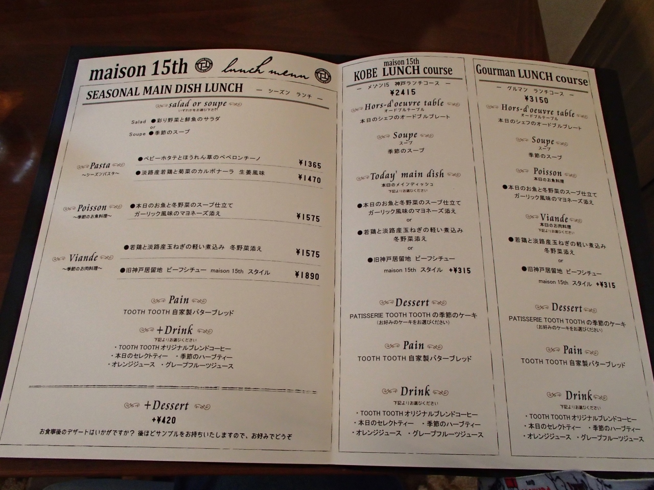 ランチのメニューは1365円~3150円で、料理もとても美味しかったです!