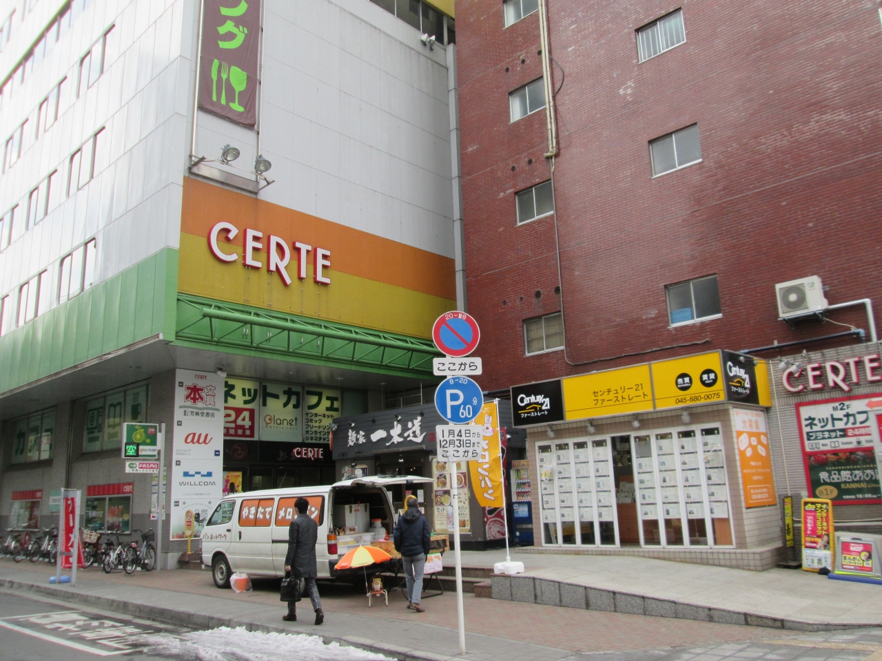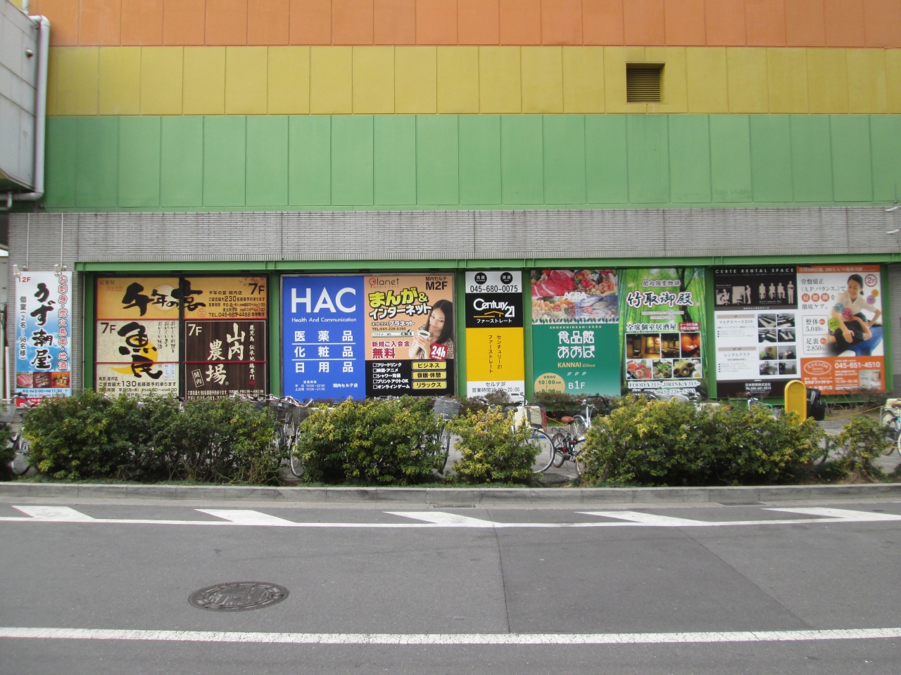 JR関内駅を下車してすぐ。地下1階から12階まで写真にあるように種々のお店やオフィスが入っている。エントランスにあるコージーコーナー、地下1階にあるスーパーマーケット、1階の薬局、2階のダイソー、上層階の居酒屋は良く利用する。