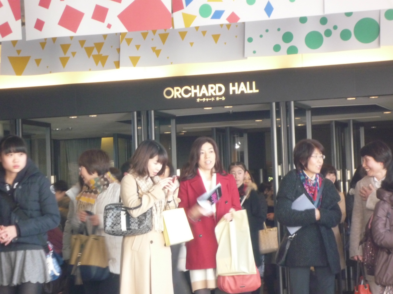 どうにか渋谷文化村の入り口に着いた。中に入り案内で尋ねるとオーチャード・ホールはこの上だという。家族と待ち合わせしていたので、入り口まで出て家族が来るのを待った。しかし、いくら待っても家族は来ない。そろそろ開演の時間が迫ってきた。焦りながら携帯で電話することにした。しかし繋がらない。さらに脂汗も出てきた。もう、開演1分前となった。諦めて、中に入ろうとしたとき、携帯が鳴った。いそいで電話に出ると、オーチャード・ホールの入り口に来ているという。入口がもう一つあったのだ。僕は二階にあるその入口へ向かった。東急百貨店を左に行くのではなく右に建物に沿って歩けばその裏にオーチャード・ホールの入り口に着くのだ。家族は渋谷駅からタクシーで来ていたので、タクシーならここへ運んで来てくれるのだ。ここなら道路のすぐそばだからオーチャード・ホールなのである。まいったまいった。初めて行く者にはオーチャード・ホールのHPの案内図ももっときちっと書いて欲しいと思った。