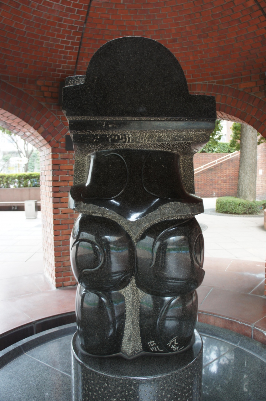 恋弁天というモニュメントは、住友ビルの敷地内。ちょっと陰になったような場所にありました。気が付くと傍らには小さな出雲大社の社もあって、この恋弁天にお参りすると出雲大社と同じご利益が受けられるということです。