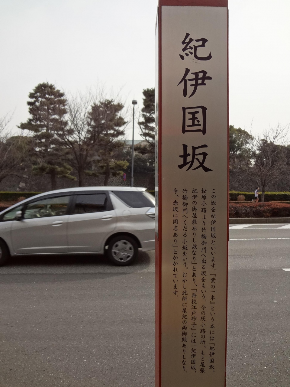 竹橋駅から国立近代美術館、国立公文書図書館の前を通り、靖国神社の方へ上がっていく坂です。この辺りに、紀伊家の屋敷があったそうですが、1657年の大火、いわゆる、振袖火事により、江戸城の天守閣と共に焼失したそうです。