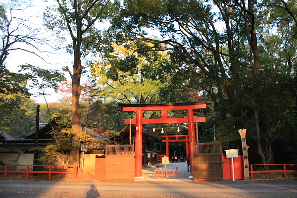 下鴨神社の摂社として古くより祀られ、女性守護としての信仰を集める神社です。糺の森の南端にあり、この付近から森を通り、下鴨神社の本殿へと向かうことになります。絵馬を化粧品でメイクするというかわったお参りの方法があります。