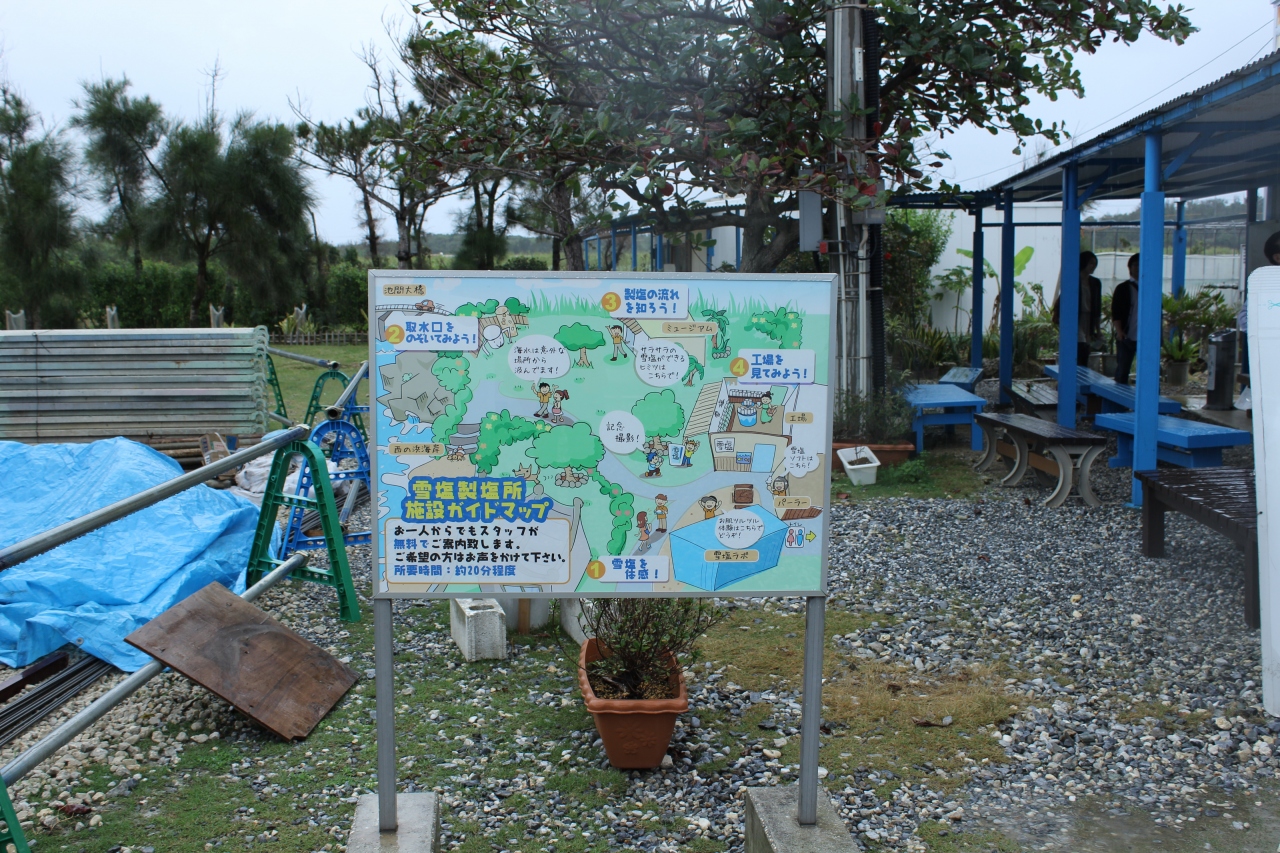 雪塩製塩所は、海岸近くにたっている小さな製塩所で、宮古島の代表的なお土産品になっている雪のような塩がここで作られています。