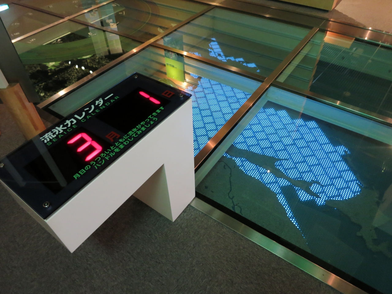 なお、ミュージアムは枝幸の郷土資料館とも言え、古代のみならず、近代の暮らしや風土なども紹介しています。カレンダーのハンドルを回して、大きな立体地図に流氷の分布の様子が映しだされる様子もおもしろかったです。