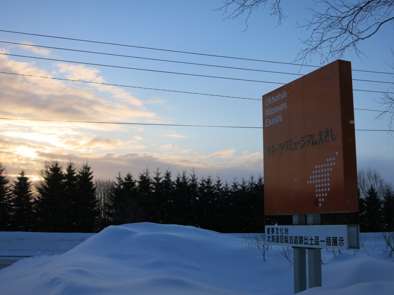 枝幸の中心部より北へ10kmほどのところにある、同じ枝幸町内の目梨泊遺跡からの出土品を主な見所として、当時のオホーツク人の暮らしぶりを、住居などを再現展示しながら紹介していました。