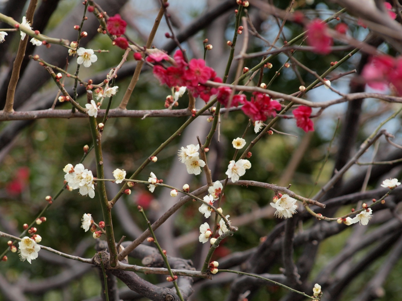 大手門から入ると、木瓜や梅、ジンチョウゲなどが目に入ります。