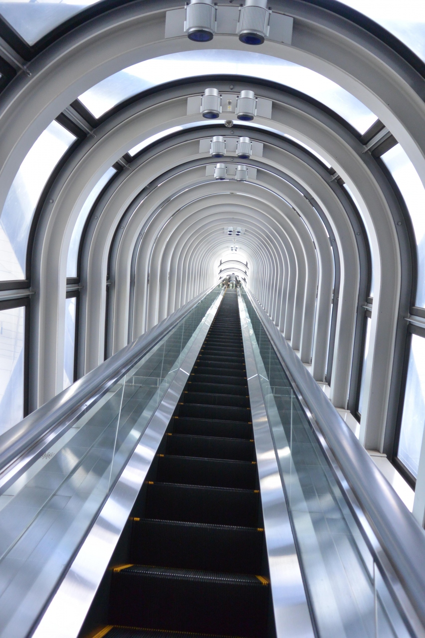 斬新な梅田スカイビルの39・40階に空中庭園があります。3Fからシースルーのエレベーターに乗り、シースルーのエスカレーターに乗り換えます。エスカレーターを降りるとチケット売り場があり、入場料は700円。レストランもあり夜景を眺めながら食事も出来るようです。恋人の聖地として名前などを刻印出来るハート型の鍵が売っていてルミ・デッキのフェンスに誓いのロックをするようで、沢山の鍵がありました。360℃景色が眺められ、行ったのが日中でしたが都会の街並みを見れとても気持ち良かったです。