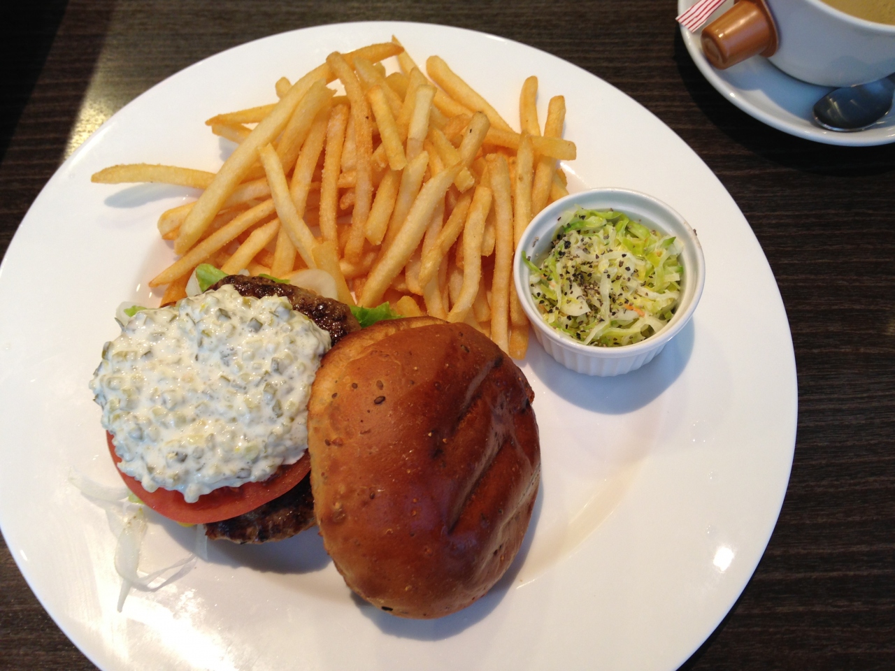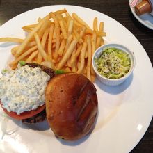 ポテトは塩かけ過ぎででてきたので塩を掛けないでと頼んだ方がいいかもしれません。コーヒーは熱くなく暖かいレベルでした。メインのハンバーガーは看板の通りバンズも美味しくタルタルソースがマッチしていて美味しかったです。