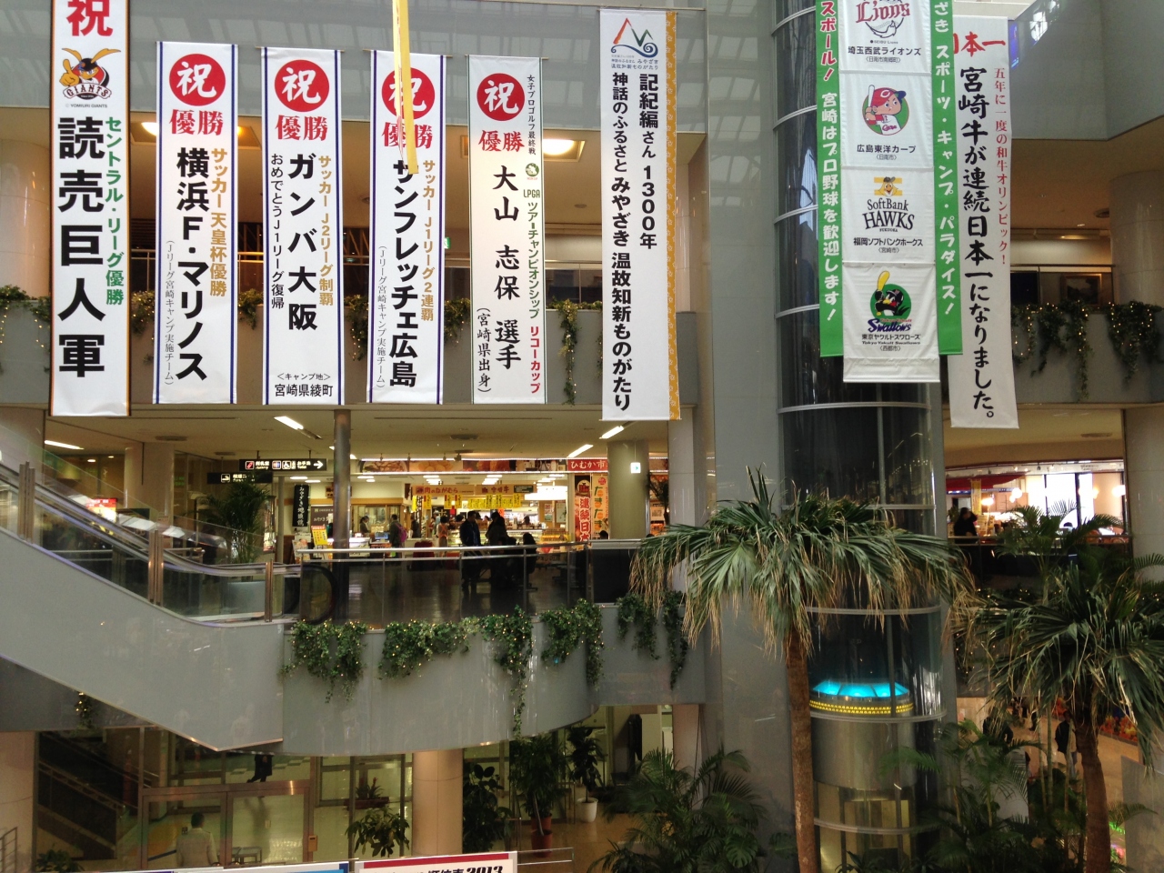 からいも団子、飫肥天の実演販売が出発ロビー階にあります。からいも団子は簡単に言うときなこ餅ですが餅がツルッと飲み込めるくらいトロ〜リとしていて美味しいです。宮崎空港に行った時は必ず購入します。到着ロビーでは800円以上もするマンゴーソフトクリームが売っていました。今まで見た中で一番値段の高いソフトクリームでした。