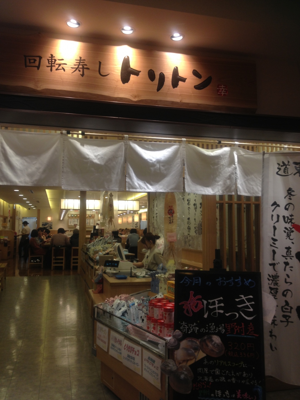 妻と一緒に月一回のソラマチグルメ探訪。ソラマチの6階はレストランフロアになっていていろいろなお店がありますが、どのお店も結構な行列です。札幌であまりの美味しさと行列にびっくりだった回転寿司トリトンを発見。3時ころだったので並ばずに店内へ。新鮮で大きなネタがふんだんで満腹満足。札幌のままとはいかないけど、北海道が充分堪能できます。