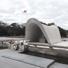 この原爆慰霊碑を正面から見ると一直線上に原爆ドームが見えます。人類が誕生して初めて使用された恐ろしい兵器によって罪のない人が何万人も亡くなった悲劇を我々は忘れないようにしなくてはいけないと強く思いました。