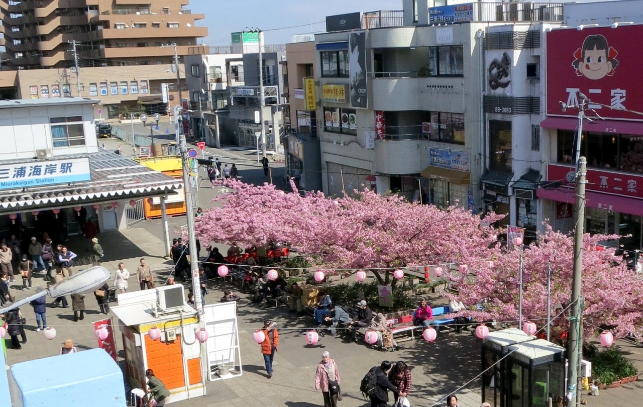 三浦海岸駅前の桜は満開、所々散り始めた桜もありました。
