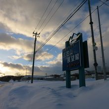 枝幸の街を見下ろす三笠山(172m)の山頂にあります。開館時期は5月~10月。入館無料。山の南側に山頂までアクセスする道路があり、国道238号線のホテルニュー幸林から500mほど南側にある信号のところから山の方へと向かいます。流氷の様子を眺めようと、山頂に向かおうとしましたが、冬は途中の山へ向かう分岐から除雪がされていません。途中まではスキーの跡がありましたが、中腹の分岐からは、それすらもありません。正面の三笠山スキー場のリフトでのアクセスとなります(展望閣は閉まっていると思いますが)。
