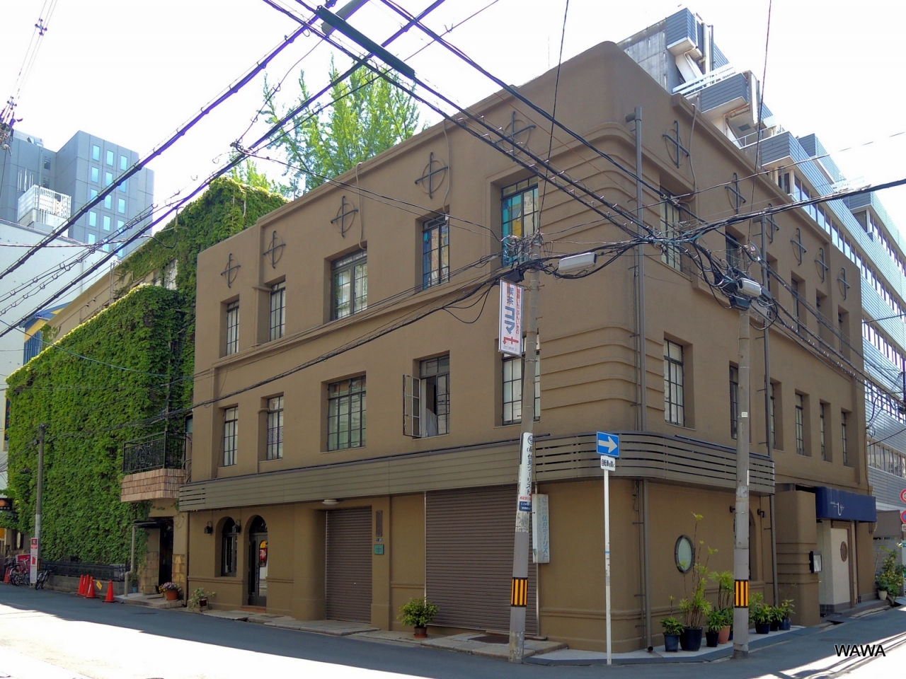 新井ビルは、空襲の被害が比較的少なかったことから、戦前の建築物が多く残る北浜地区にあるレトロビル。大正12年(1923年)の竣工当時は、澤野ビルヂングと称しホテルとして使われていたとのこと。客船の丸窓のような飾りが外壁を取り囲み、角地に建つので小規模ながら人目を引くビルの一つでした。