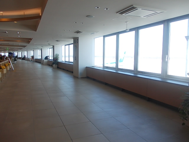 新千歳空港の展望デッキは、4Fに屋外の従来型展望デッキが勿論あるのですが、こちらは冬季閉鎖されていますので注意が必要です。尚、3Fエリアは半円形が長々と続く屋内型の展望デッキとなっていて、すぐ向かいがフードコートになっていますので、冬季はここで飲食でもしながら、ゆっくりと飛行機の姿を眺めることが出来ます。