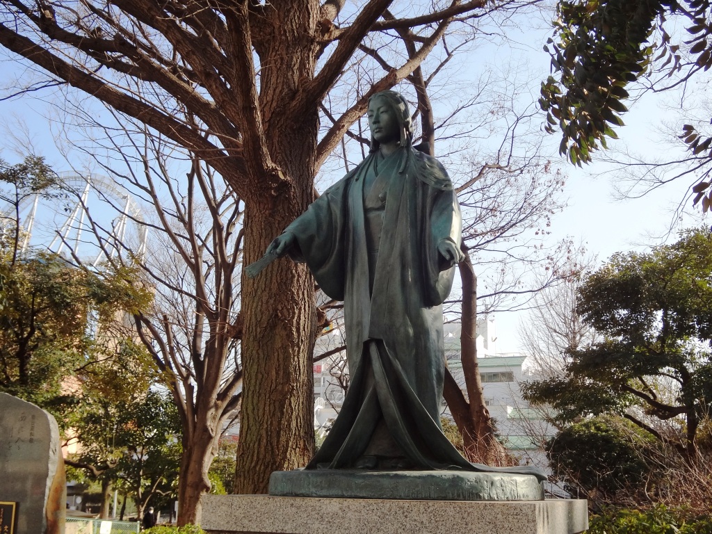 文京区役所が入る文京シビックセンターの真ん前にある文京区立礫川公園に春日局の像が立ってました。江戸城にほど近い場所なので、何らかの関係はあるだろうと思ったら、春日局は徳川家光からこの地域の土地を拝領していて、それに由来して「春日」という地名がついたとのこと。それは分かるけど、立っている像、華奢なお嬢さんという雰囲気で、イメージに合わないんだけどなあ。