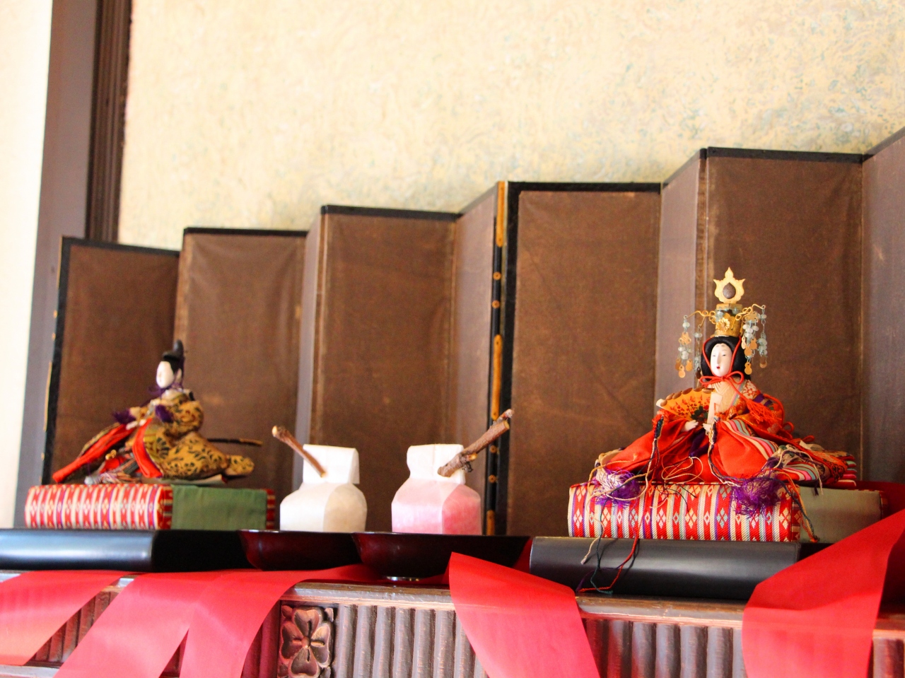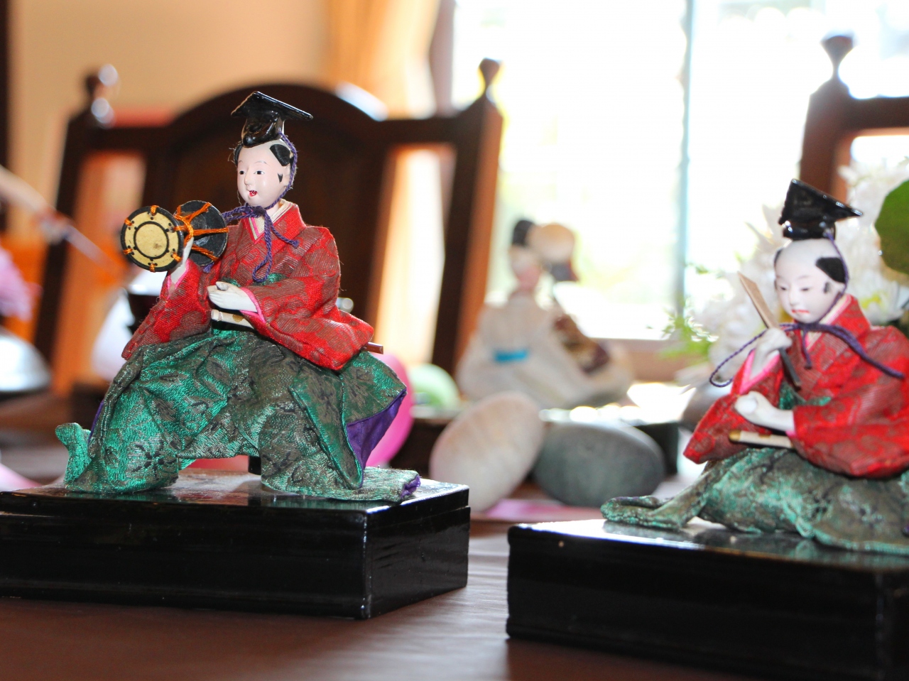 そして、リビングにはベーリック・ホールと同じ齢を重ねてきた小さなお雛さまが展示してあります。この人形たちは、ご近所に住む方から寄付された歴史あるもので、作られたのは昭和5年。古いものですが、きちんと手入れされています。
