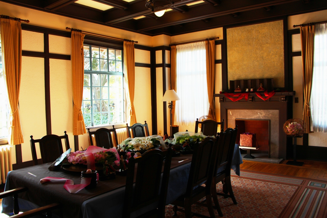 桃の節句の頃は、昭和初期のお雛飾りと洋館のコラボが楽しめます。