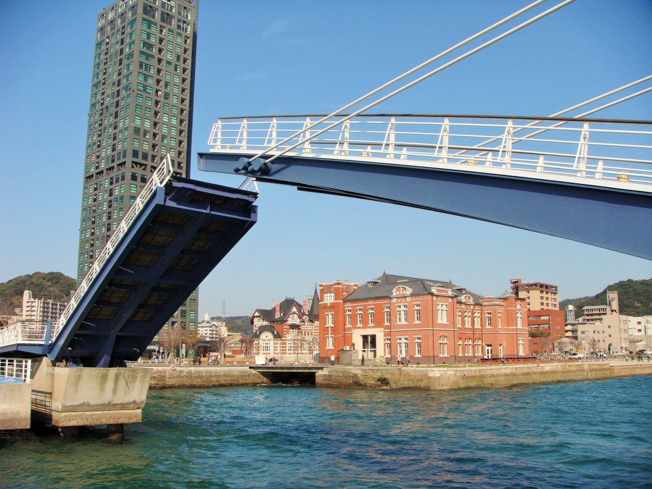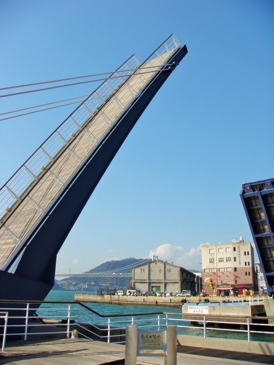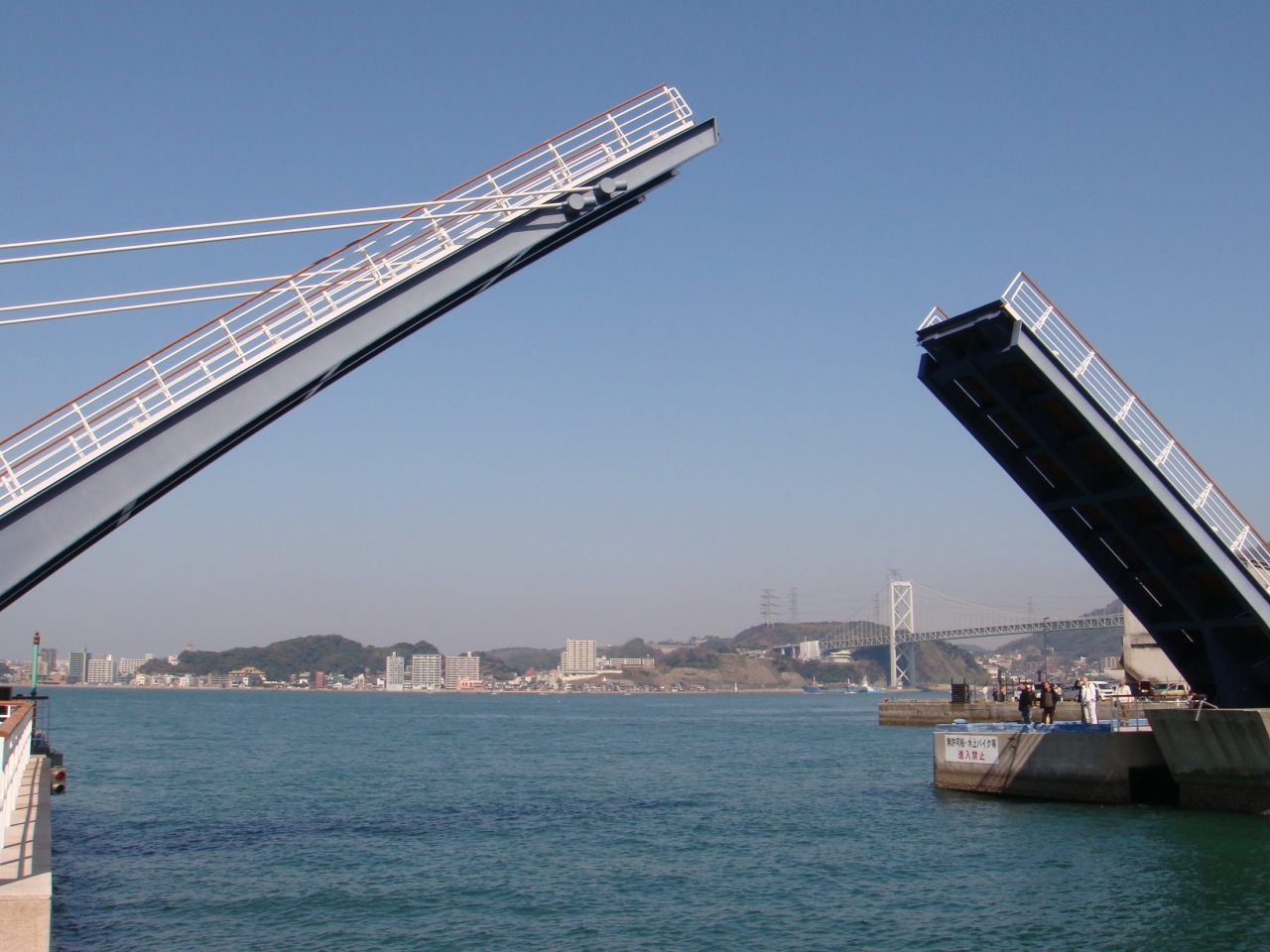 歩行者専用のはね橋で、毎日10時から16時の間で1時間に1回跳ね上がります。