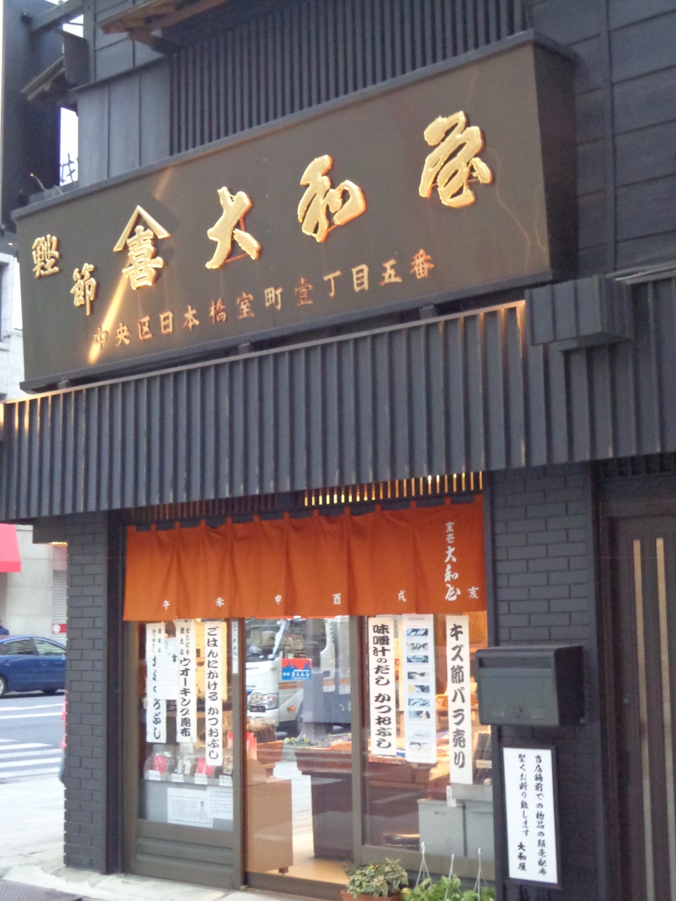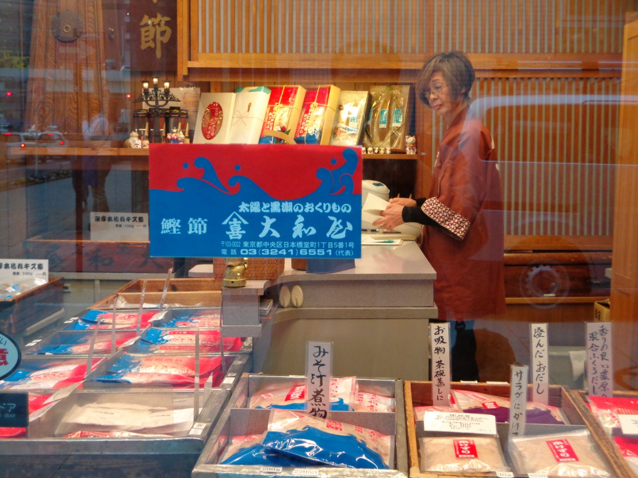 かつおぶし専門店の三越前の小さな老舗です。かつて魚河岸として栄えた東京日本橋にて長年、こだわりの商売を続け先代の築いた伝統と斬新な発想を合わせさらに発展させるために頑張っているお店です。並びに大手鰹節の「にんべん」が綺麗な店が有りますが、江戸の伝統を残すこのお店に哀愁を感じます。