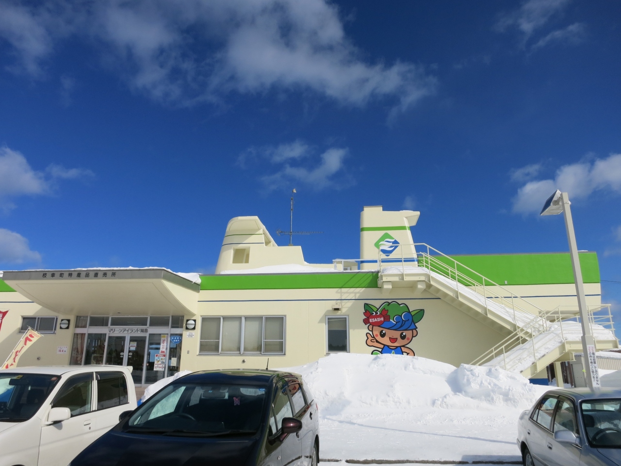 北見枝幸にある国道238号線の道の駅です。枝幸町内の道の駅はここだけですが、枝幸の中心部からは5~6km、雄武方面に離れています。建物が船の形をしていて、屋上にも上がれるようですが、冬は階段に雪が積もっていました。