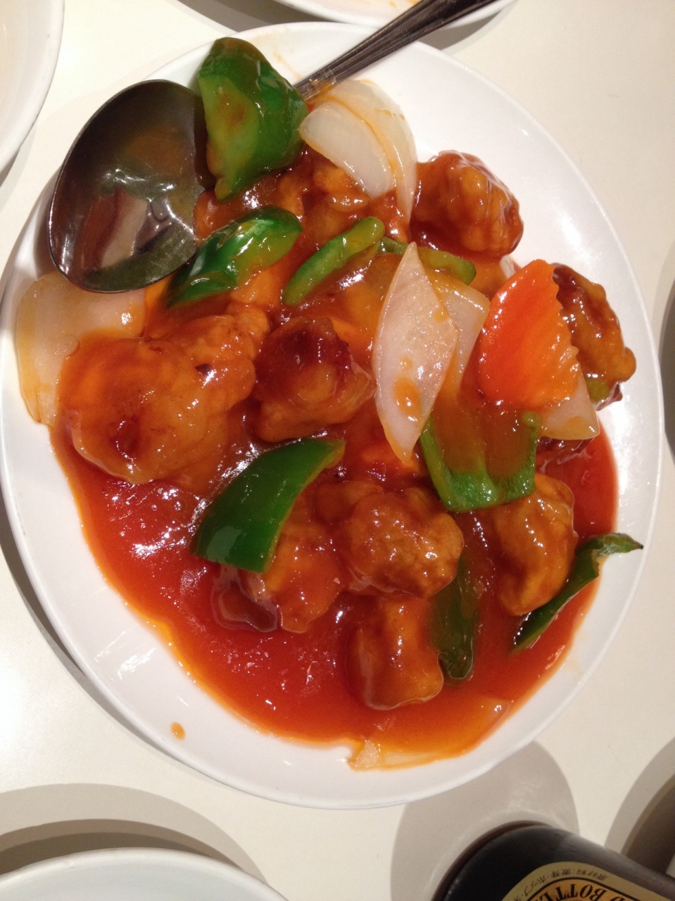 店内はさほど広くありません。焼きそばが有名ですが今日は酢豚とチンジャオロースとエビチリと焼きそばを頼みました。どのお料理も美味しいのですがお料理の量も割にお皿がどれもこれも小さくて何だか食べづらかったです。