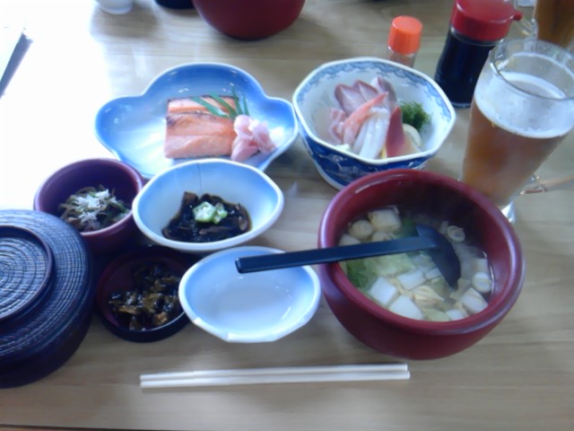 どちらも美味しかったですよ。特に焼き魚(サーモン)がふっくらやわらかくて、美味しかったです。お刺身と小鉢と漬物、番屋汁がついています。