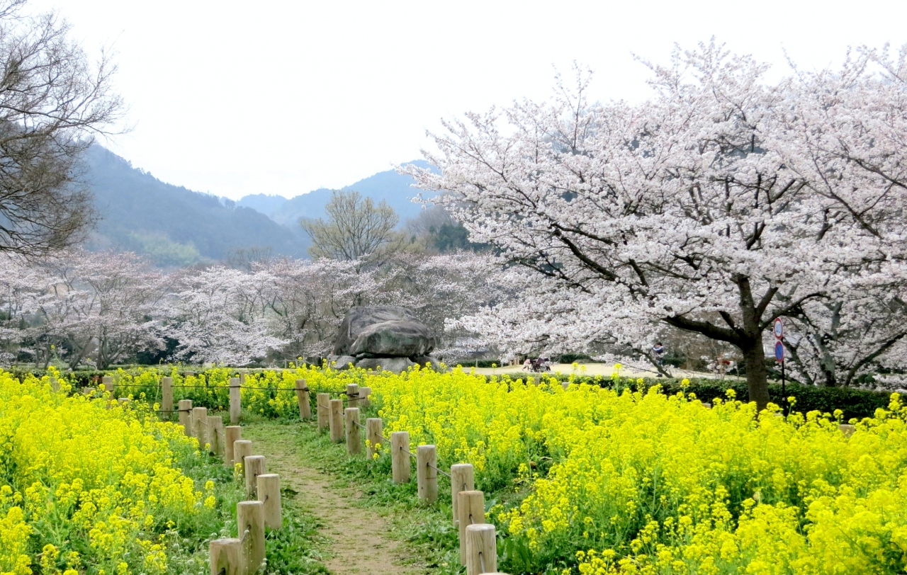 古墳と桜と菜の花とすばらしい