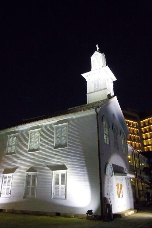 夜のライトアップがとてもきれいで、旧出島神学校の近くにオランダの国旗カラーのイルミネーションもあるのですが、そちらもきれいでした。