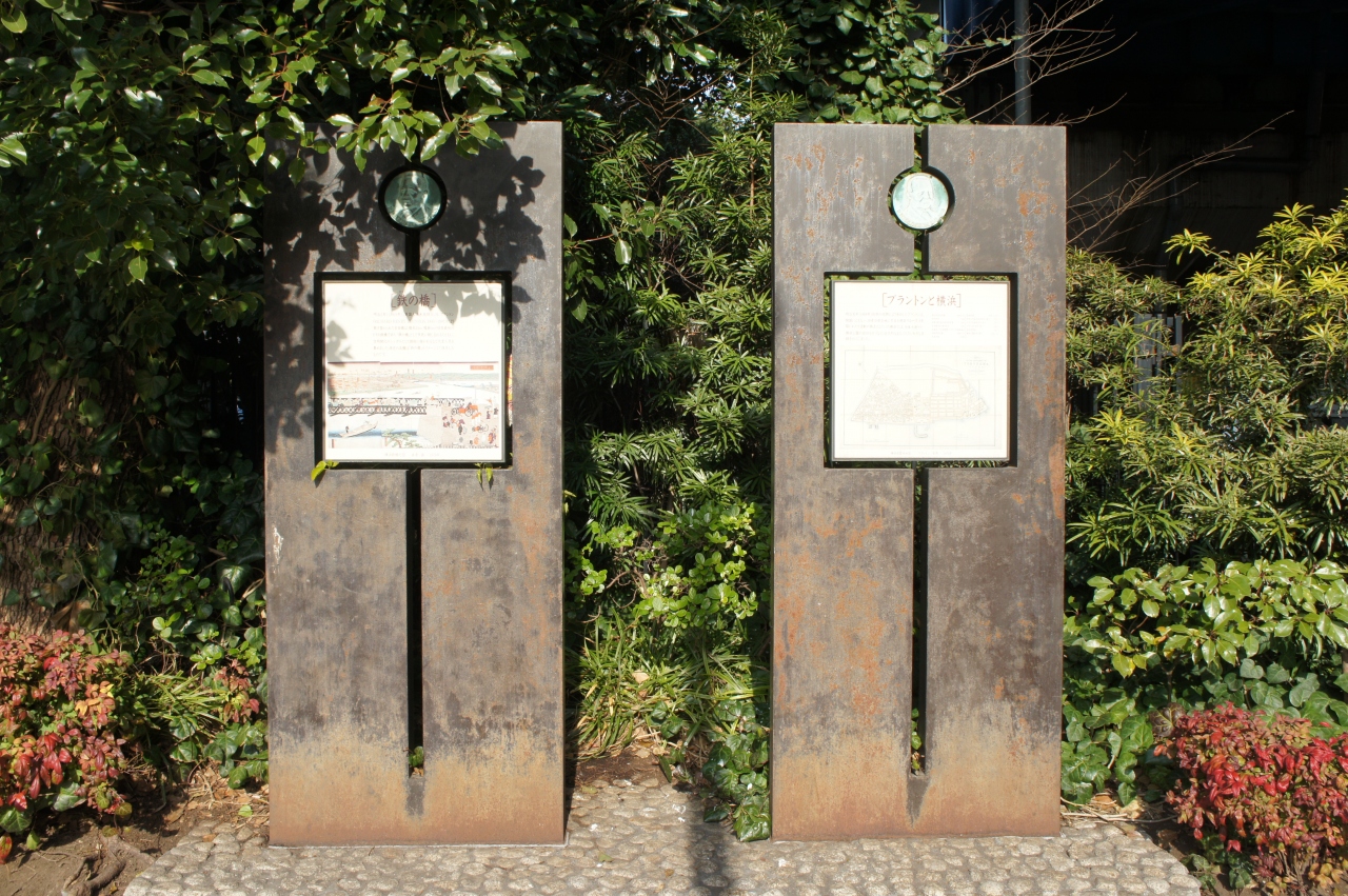 以降、「カネの橋」として親しまれ、文明開化のシンボルともなったよう。碑はこれを記念するものです。