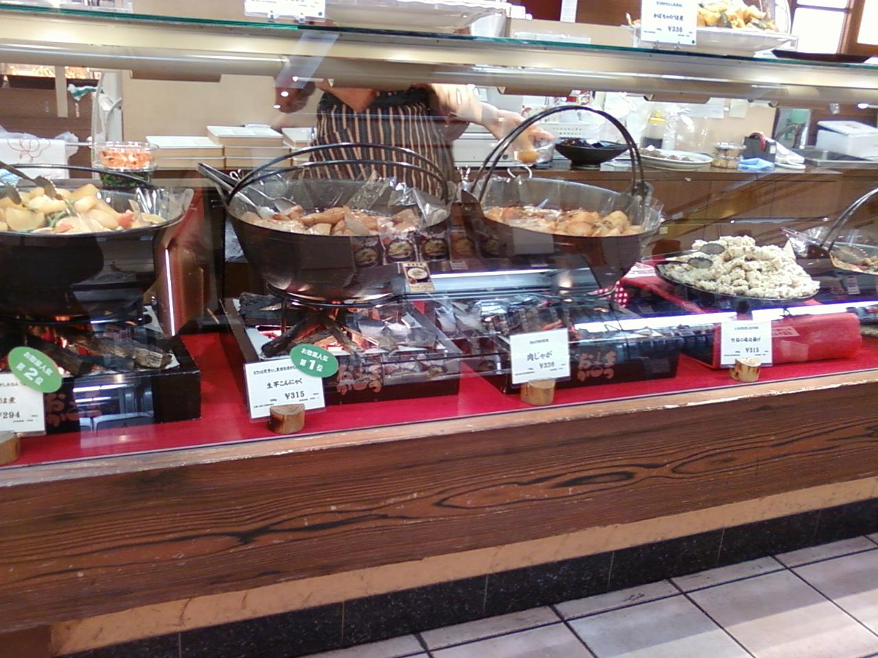 ここのまつおかさんは、新宿駅東南口から三分、新南口から二分くらいのところにある、タカシマヤタイムズスクエアの地下一階にあります。お惣菜中心のお店でとても手の込んだ料亭的なものから、家庭的なものまで幅広く種類も豊富です。お惣菜が鍋にかかっているかのようなプレゼンテーションが印象的です。